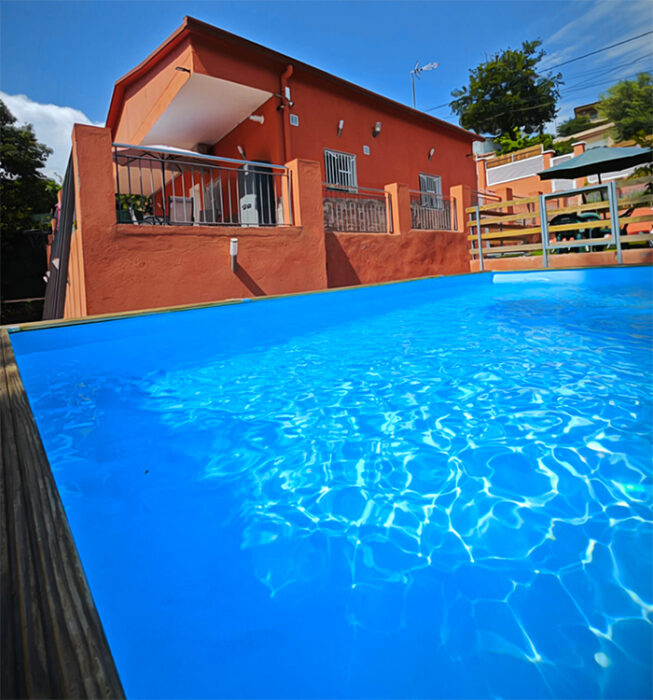 Relájate en nuestra piscina al aire libre, rodeada de un entorno natural que te invita a desconectar y disfrutar del aire libre. Desde la terraza, podrás contemplar las impresionantes vistas a la montaña, creando un ambiente de paz y bienestar que te hará sentir como en un verdadero paraíso.